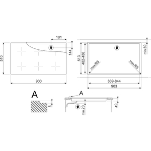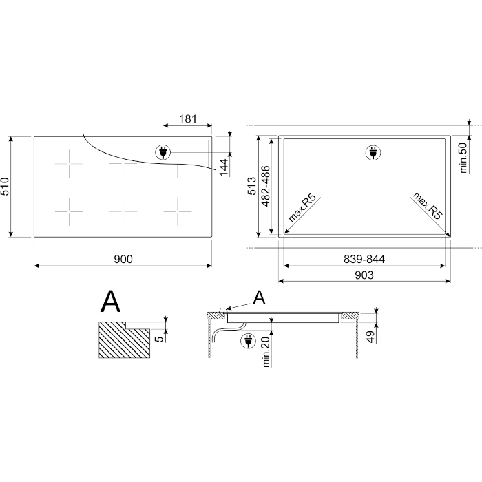 Габариты ниши для встраивания, мм: 839-844x482-486