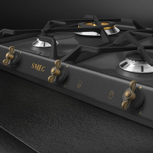 Газовая варочная панель серии Coloniale в цвете антрацит.УПРАВЛЕНИЕ И ФУНКЦИОНАЛЬНОСТЬ:
