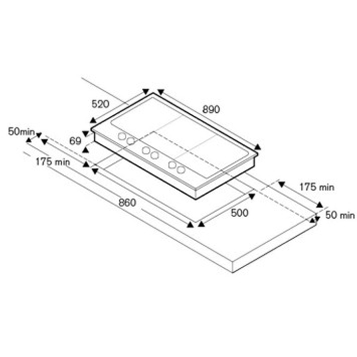 Габариты ниши для встраивания (ШхГ): 860х500 мм