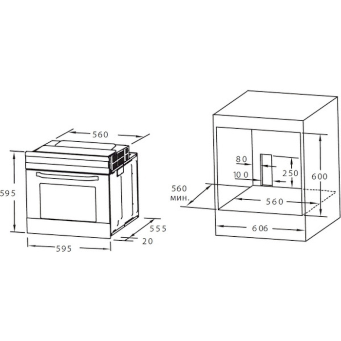 Размеры для встраивания (ВхШхГ): 590х560х560 мм