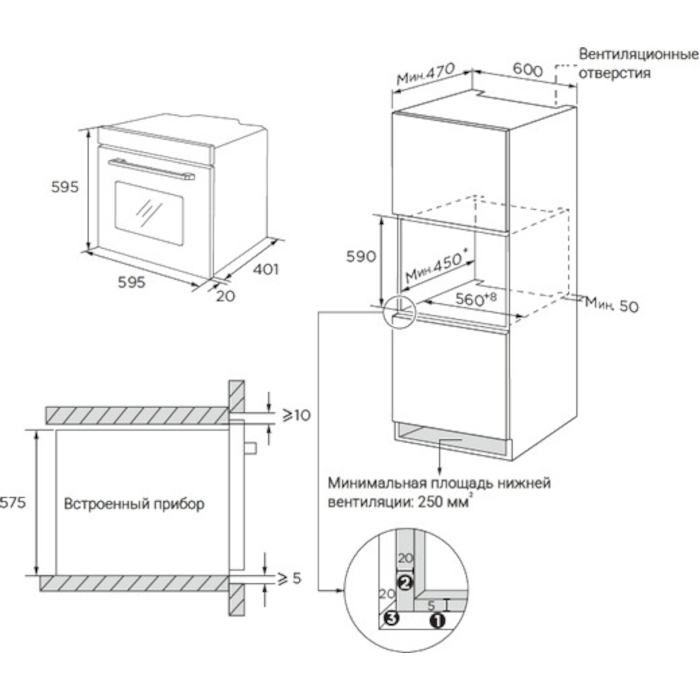 Размеры для встраивания (ВхШхГ): 590х560х450 мм