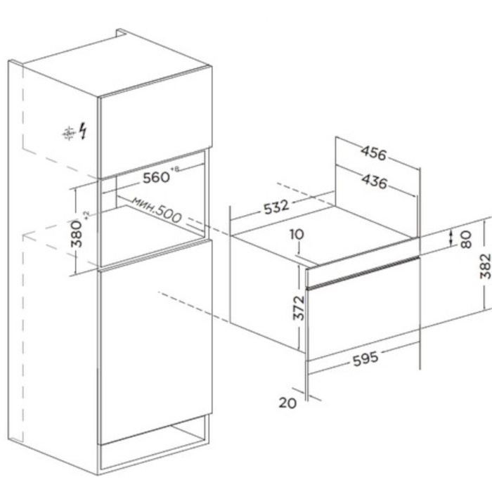 Размеры ниши встраивания (ВхШхГ): 382х560-566х500 мм