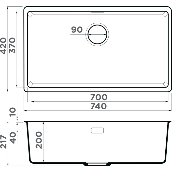 Размер мойки: 740х420 мм