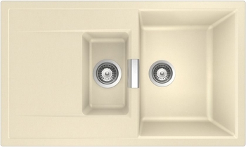 • Просторная глубокая основная чаша, крыло, плавно перетекающее во вспомогательную чашу — идеальное сочетание в небольшой мойке.