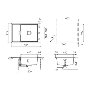 Размер мойки: 780x510 мм