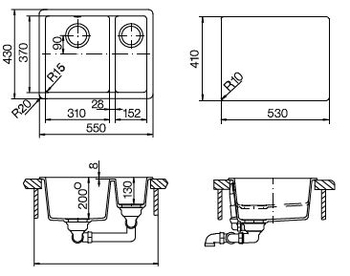 Размеры мойки: 550x430