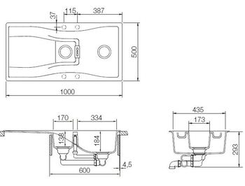 • Просторная глубокая основная чаша, дополнительная чаша с коландером, обширное крыло с уклоном в направлении чаш — функциональная составляющая.