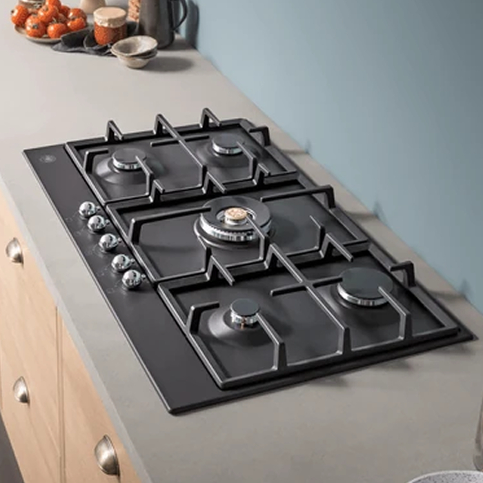 Газовая варочная панель серии Heritage в черном матовом цвете.УПРАВЛЕНИЕ И ФУНКЦИОНАЛЬНОСТЬ: