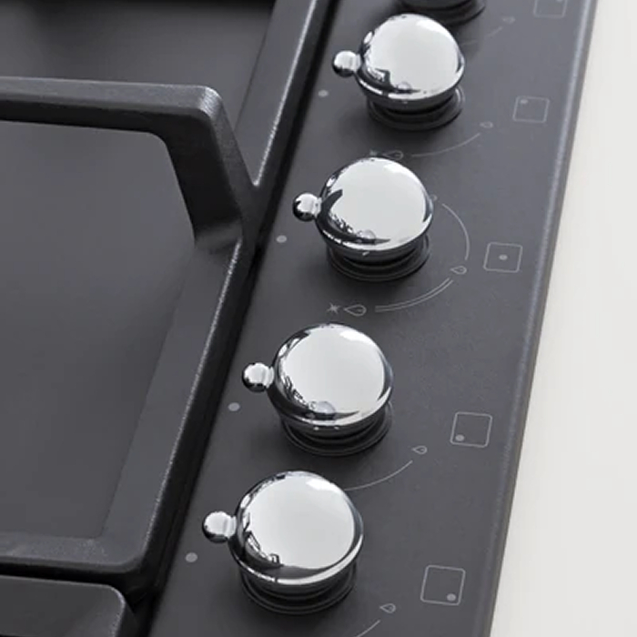 Газовая варочная панель серии Heritage в черном матовом цвете.УПРАВЛЕНИЕ И ФУНКЦИОНАЛЬНОСТЬ: