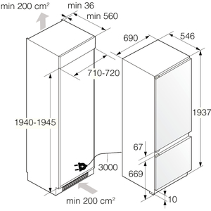 Размер ниши: (ВхШхГ): 1940-1945х710-720х560 мм