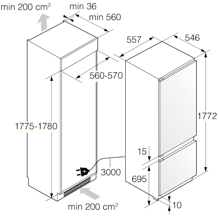 Размер ниши: (ВхШхГ): 1775-1780х560-570х56 мм