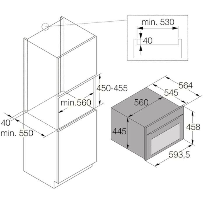 Размеры ниши встраивания (ВхШхГ): 450х560-568х550 мм
