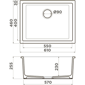 Габариты мойки в мм: 610x460