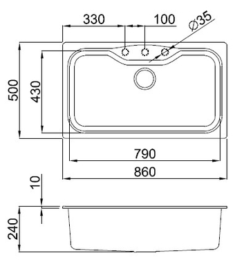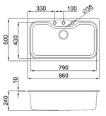 Габариты мойки в мм.: 860 х 500