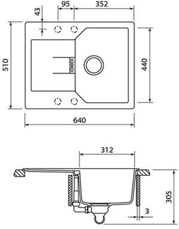 Размер мойки: 640х510 мм