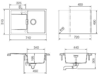 • Комфортная мойка с эргономичным крылом и просторной чашей занимает всего 74 см на столешнице и подходит для шкафа шириной 45 см.