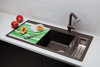 • Комбинация из 2-х разделочных досок позволяет скрыть от посторонних глаз то, что находится в мойке, например, грязную посуду.