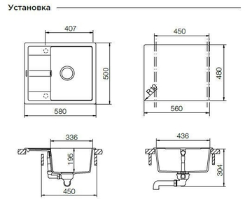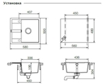 Размеры выреза при установке мойки под столешницу 564х484. Шаблон выреза предоставляется по запросу. При монтаже мойки под столешницу не забудьте доукомплектовать специальным крепежом для подстольного монтажа арт. 6.3016-8.