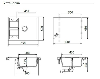 Размеры выреза при установке мойки под столешницу 634х484. Шаблон выреза предоставляется по запросу. При монтаже мойки под столешницу не забудьте доукомплектовать специальным крепежом для подстольного монтажа арт. 6.3016-8.