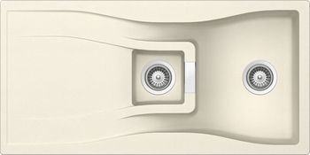 • Просторная глубокая основная чаша, дополнительная чаша с коландером, обширное крыло с уклоном в направлении чаш — функциональная составляющая.