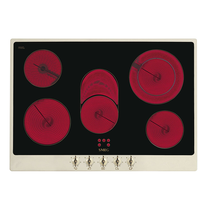 Электрическая варочная панель серии Coloniale в кремовом цвете.УПРАВЛЕНИЕ И ФУНКЦИОНАЛЬНОСТЬ: