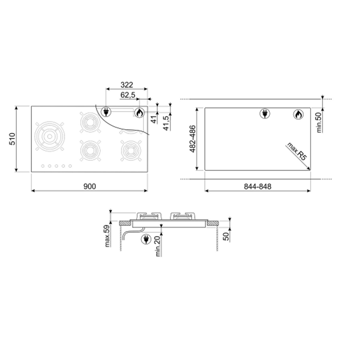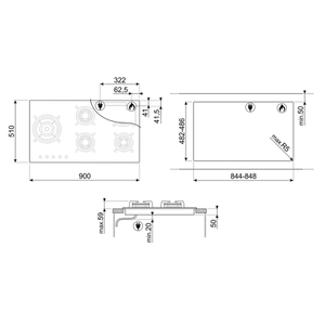 Габариты ниши для встраивания (ШхГ): 848х486 мм