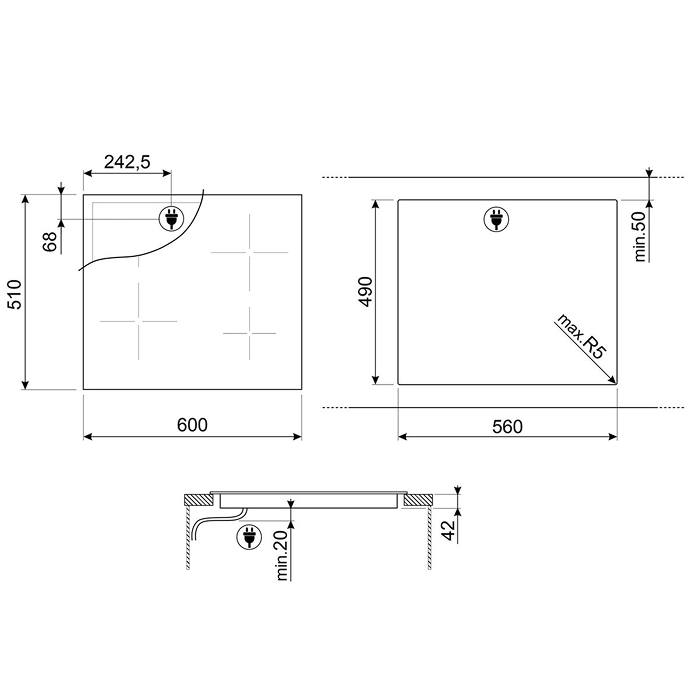 Габариты ниши для встраивания (ШхГ): 560х490 мм