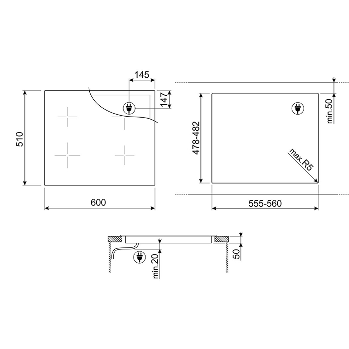 Габариты ниши для встраивания (ШхГ): 560х482 мм