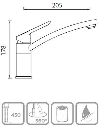 Длина излива: 205 мм