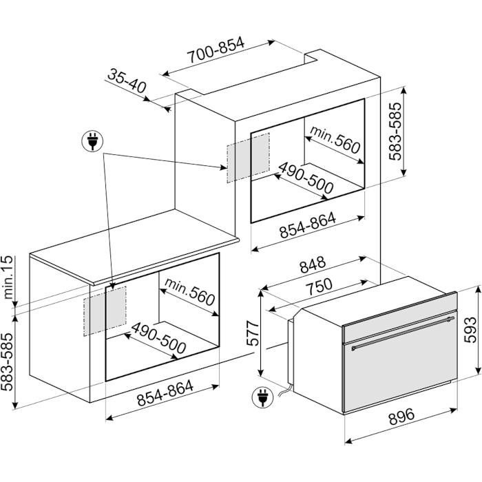 Размеры ниши встраивания (ВхШхГ): 583-585x854-864x490-500 мм