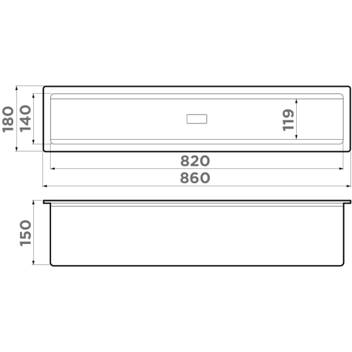 Размер выреза под сушку в мм: 820x119