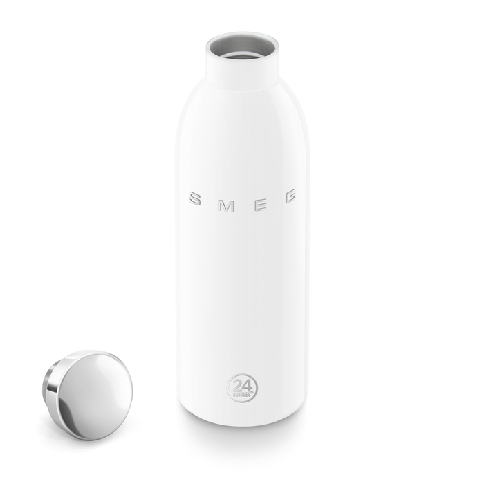 Термическая бутылка — результат сотрудничества Smeg и 24Bottles, сочетающий в себе культовый дизайн и функциональность. Гладкая глянцевая поверхность и рельефный логотип напоминают стиль Smeg 1950-х годов, сохраняя напитки горячими или холодными в течение всего дня.Пищевая нержавеющая сталь 18/8: безопасный материал
