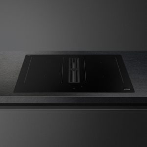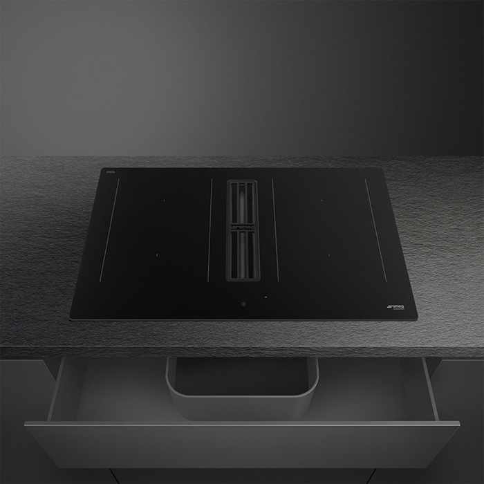 Индукционная варочная панель со встроенной вытяжкой серии Classica в черном матовом цвете.