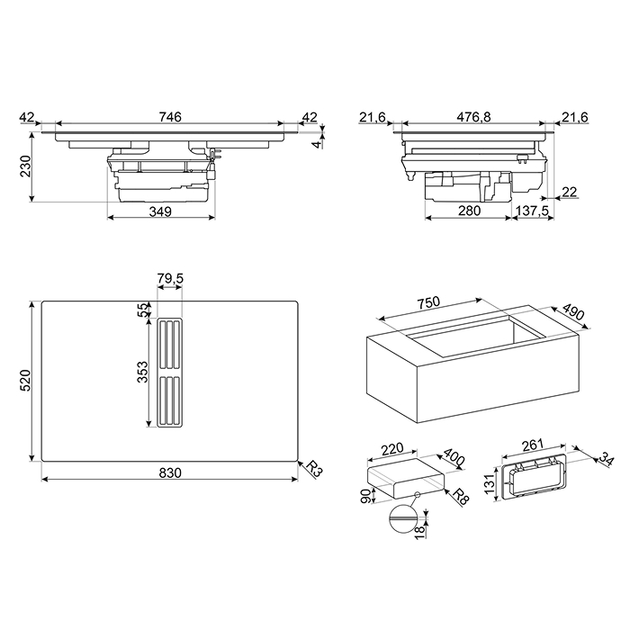 Габариты ниши для встраивания (ШхГ): 750х490 мм