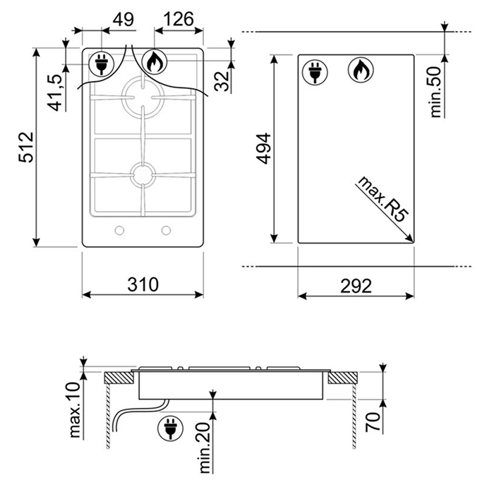 Габариты ниши для встраивания (ШхГ): 292х494 мм