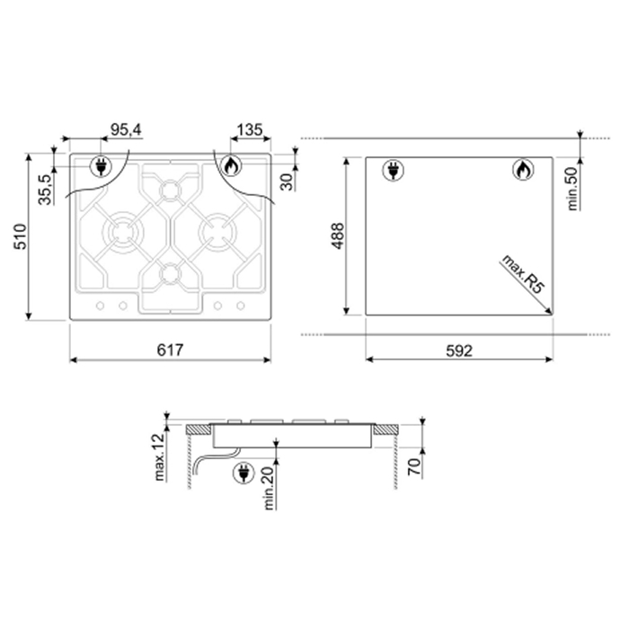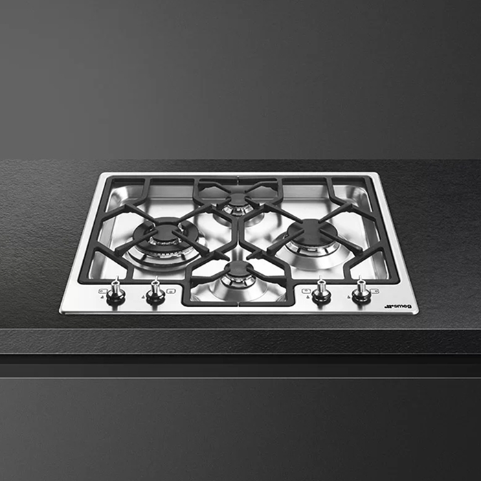 Газовая варочная панель с ромбовидным расположением конфорок серии Classica в цвете нержавеющая сталь.УПРАВЛЕНИЕ И ФУНКЦИОНАЛЬНОСТЬ: