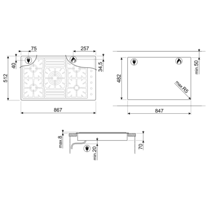 Габариты ниши для встраивания (ШхГ): 847х482 мм