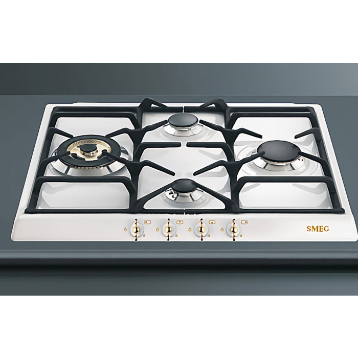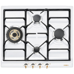 Газовая варочная панель с ромбовидным расположением конфорок серии Coloniale в белом цвете.УПРАВЛЕНИЕ И ФУНКЦИОНАЛЬНОСТЬ: