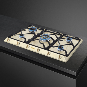 Газовая варочная панель серии Coloniale в кремовом цвете.УПРАВЛЕНИЕ И ФУНКЦИОНАЛЬНОСТЬ: