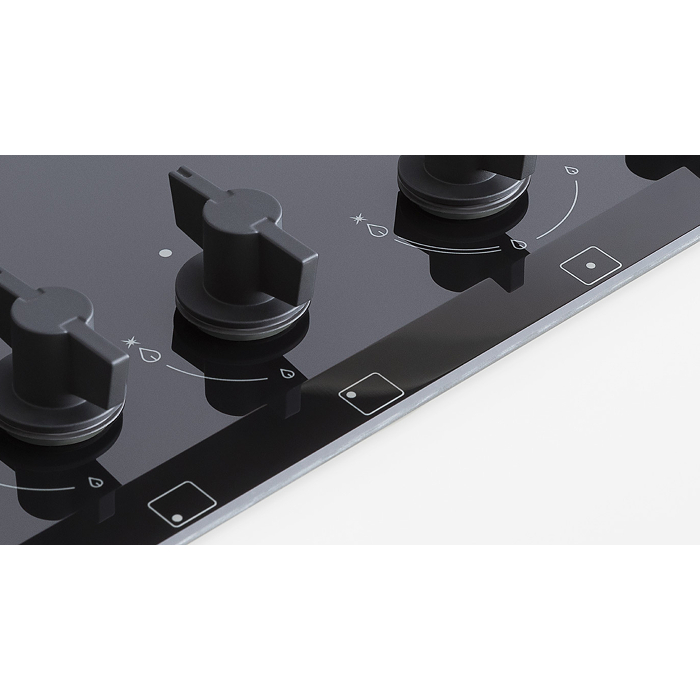 Газовая варочная панель серии Modern в черном цвете.УПРАВЛЕНИЕ И ФУНКЦИОНАЛЬНОСТЬ: