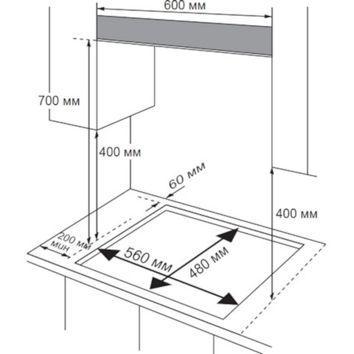 Габариты ниши для встраивания (ШхГ): 560х480 мм