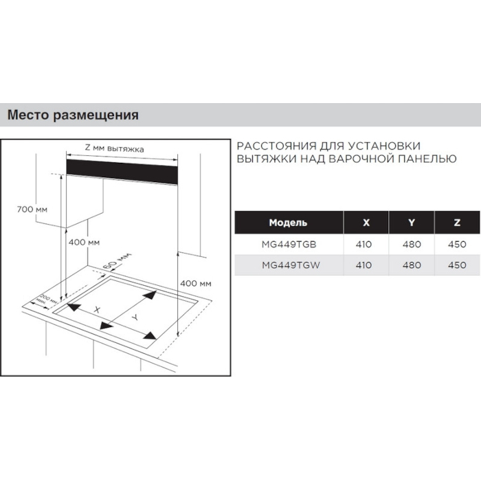 Габариты ниши для встраивания (ШхГ): 410х480 мм