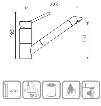 Длина излива: 223 мм