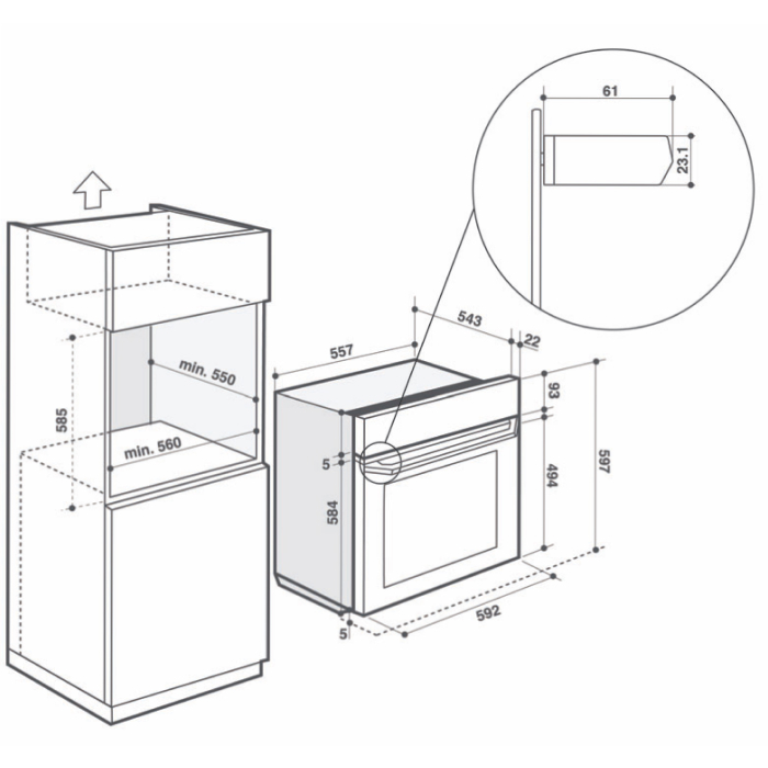 Размеры ниши встраивания (ВхШхГ): 585x560x550 мм