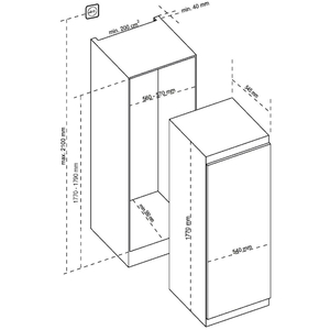 Размеры ниши для встраивания (ВхШхГ): 1770-1790x560-570x550 мм