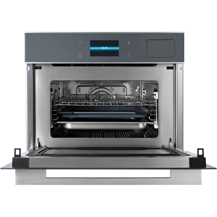 СВЧ+пар: Одновременное использование пара и СВЧ при приготовлении позволяет значительно ускорить процесс за счёт быстрого прогрева микроволнами и сохранения влаги с помощью пара, что предотвращает пересушивание продуктов, сохраняет их сочность и питательные вещества, обеспечивает равномерное приготовление блюда без потери вкуса и полезных свойств.