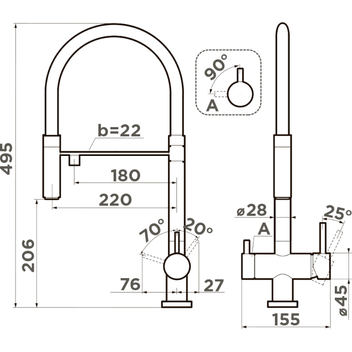 Высота смесителя 495 мм.